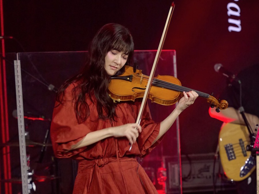 而她不只流利切換華、台、英語,也展現鋼琴、小提琴和電吉他才藝,其中林逸欣準備以鋼琴自彈自唱「I Dreamed a Dream」時,她自爆:「這首歌我第一次唱是在高中才藝表演,結果破音!今天要是再破音,影片就銷毀;沒破音的話,請大家幫我廣發出去!」 林逸欣展現鋼琴、小提琴和電吉他才藝。(欣宇宙音樂提供)